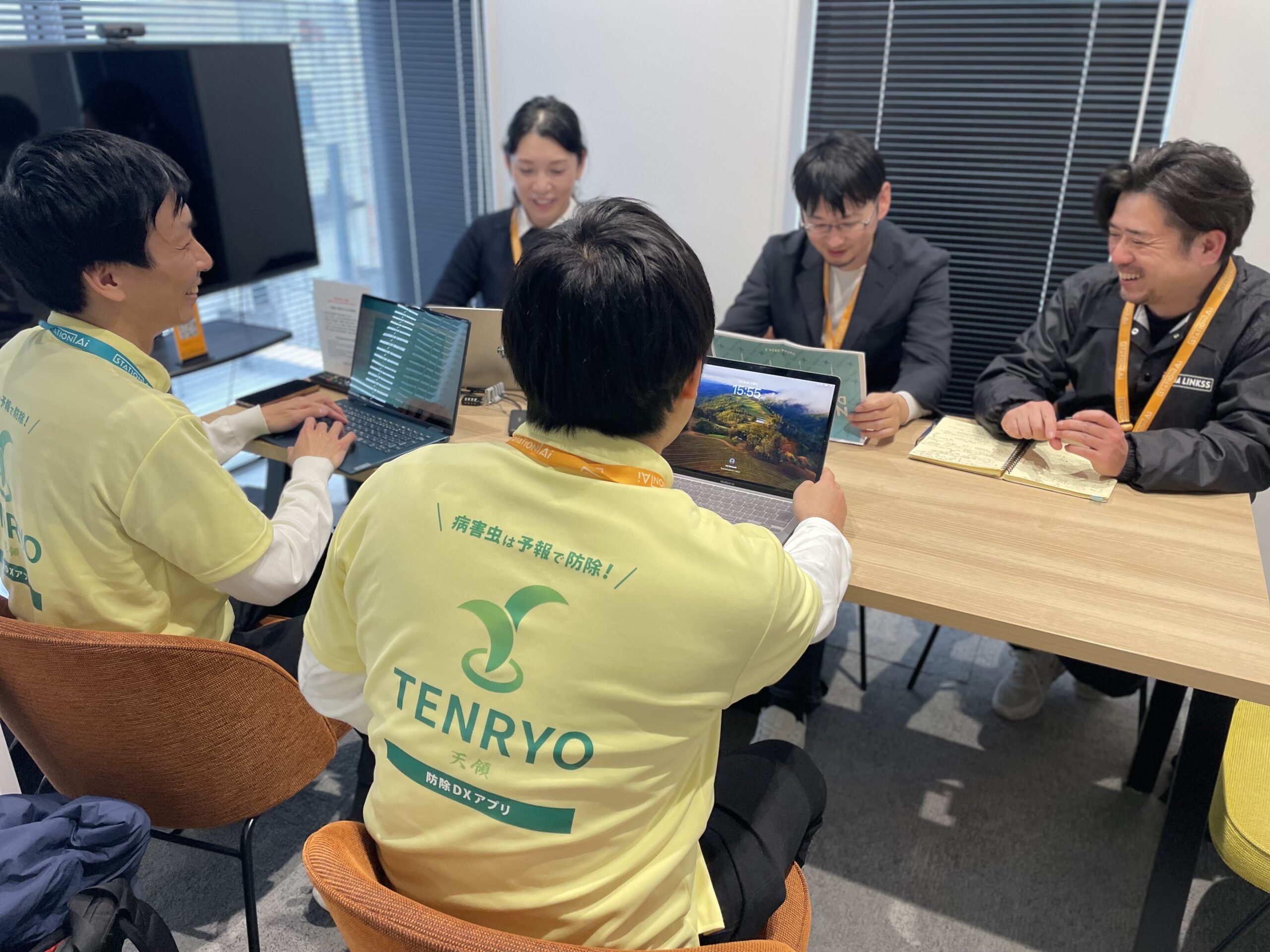 意見交換では、 「ミライ菜園さんのAI予測に合わせて、ピンポイントでドローンを飛ばせたら最高だよね!」 「農家さんの散布コストをもっと下げて、もっと楽にできる仕組みを作りたい」 といった、ワクワクするようなアイデアが次々と飛び出しました。