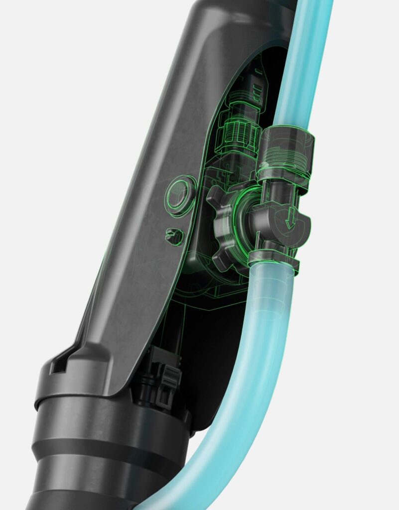 デュアルアトマイゼーション噴霧システムは、2基のスプリンクラーにより、毎分16リットルの高流量を達成し、液漏れのない、細かく均一な液滴を保証します。また、遠心スプリンクラーを追加で1組ペアリングすることで、流量を毎分24リットル(合計4基のスプリンクラー)まで増量でき、大流量を要する作業にも適応可能です。